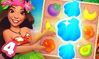 In the tropical tile-matching game Hawaii Match 4, you have a limited number of moves to collect the exotic fruit and flowers you need to complete each level. Swap around the hibiscus flowers, nutritious purple mangosteens, and vibrant green avocados to create rows of 3 or more of the same kind. Enjoy a relaxing gaming experience with soothing background music and lots of boosters to help you along.