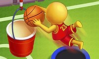 In this basketball game, your stickman is jumping up and down on a trampoline while trying to shoot some hoops. Choose the right moment to shoot the ball. If you manage to throw it into the bucket, you can bounce along to the next trampoline.