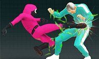 A guard in the latest edition of Squid Game has been confronted by one of the participants. Which one of them will win their fight? Challenge a friend or the computer to find out!